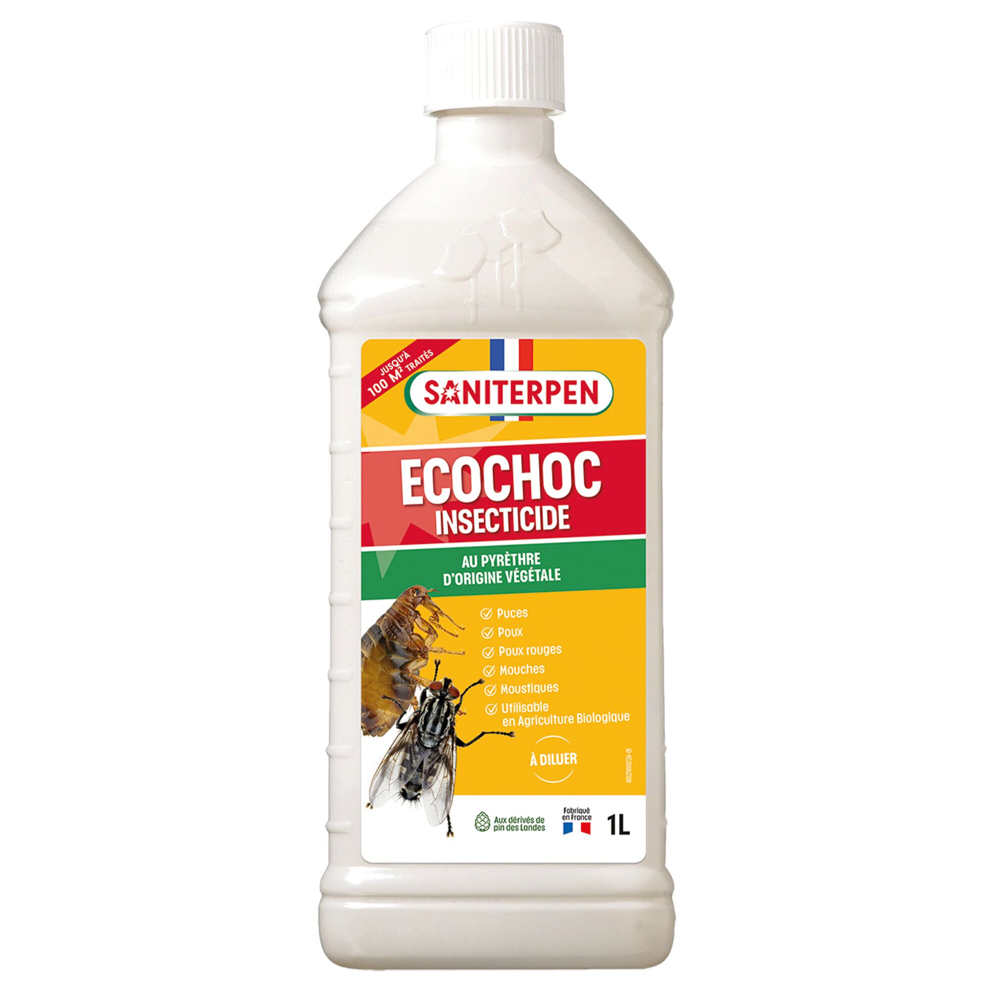 SANITERPEN | 1-C1177Cet insecticide Ecochoc Saniterpen va permettre de vous débarrasser des insectes (puces, mouches, moustiques) présent dans la niche de votre animal ou bien dans votre habitat.