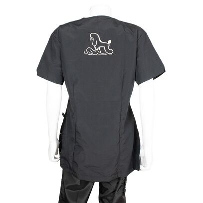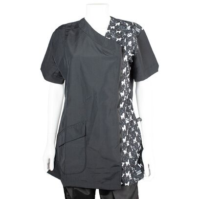 PHOENIX UNIVERSAL | 1-A3172La blouse de toilettage Maria motif Caniche est idéale pour les professionnels souhaitant allier praticité et élégance au quotidien.