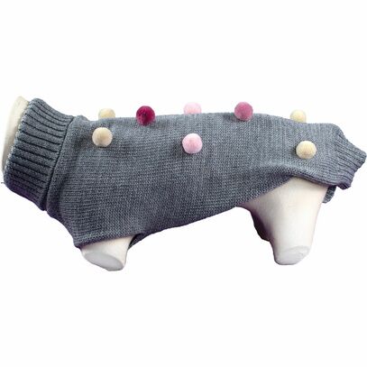 DOOGY CLASSIC | DOO-N6410Apportez une touche de chaleur et de fantaisie à votre chien grâce au pull gris élégant à pompons Doogy.