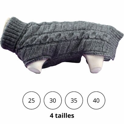 DOOGY CLASSIC | DOO-N5305Offrez à votre chien une touche d’élégance et de confort avec le pull torsadé raffiné gris Doogy.