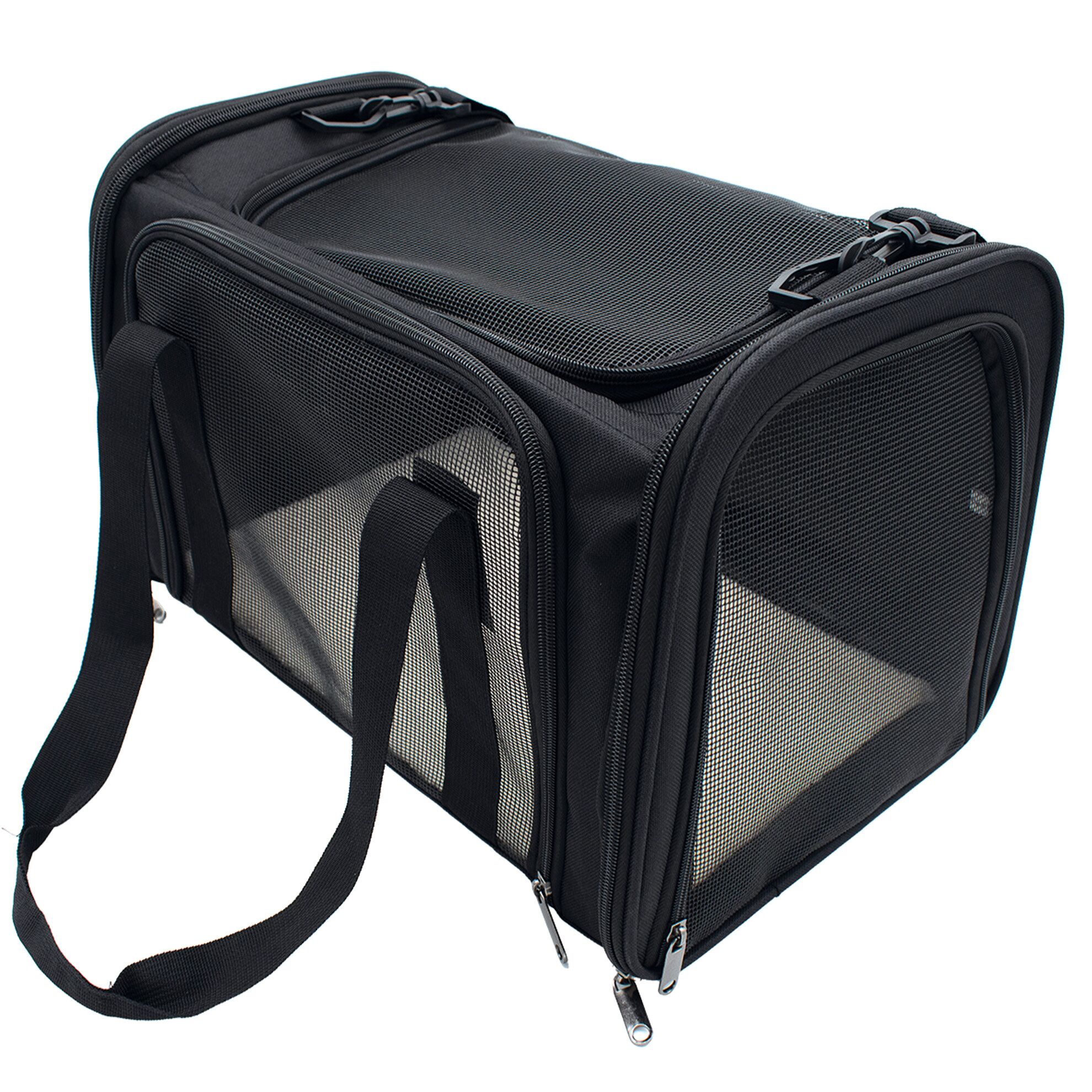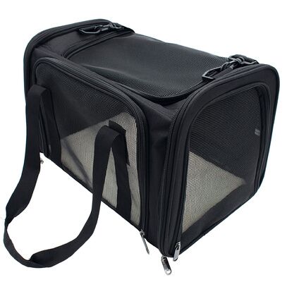 DOOGY FASHION | 1-L1469Sac compact et confortable pour petits animaux jusqu’à 5 kg. Transport main/épaule, plusieurs ouvertures zippées, bonne ventilation, poche arrière et fond rigide amovible pour plus de stabilité.