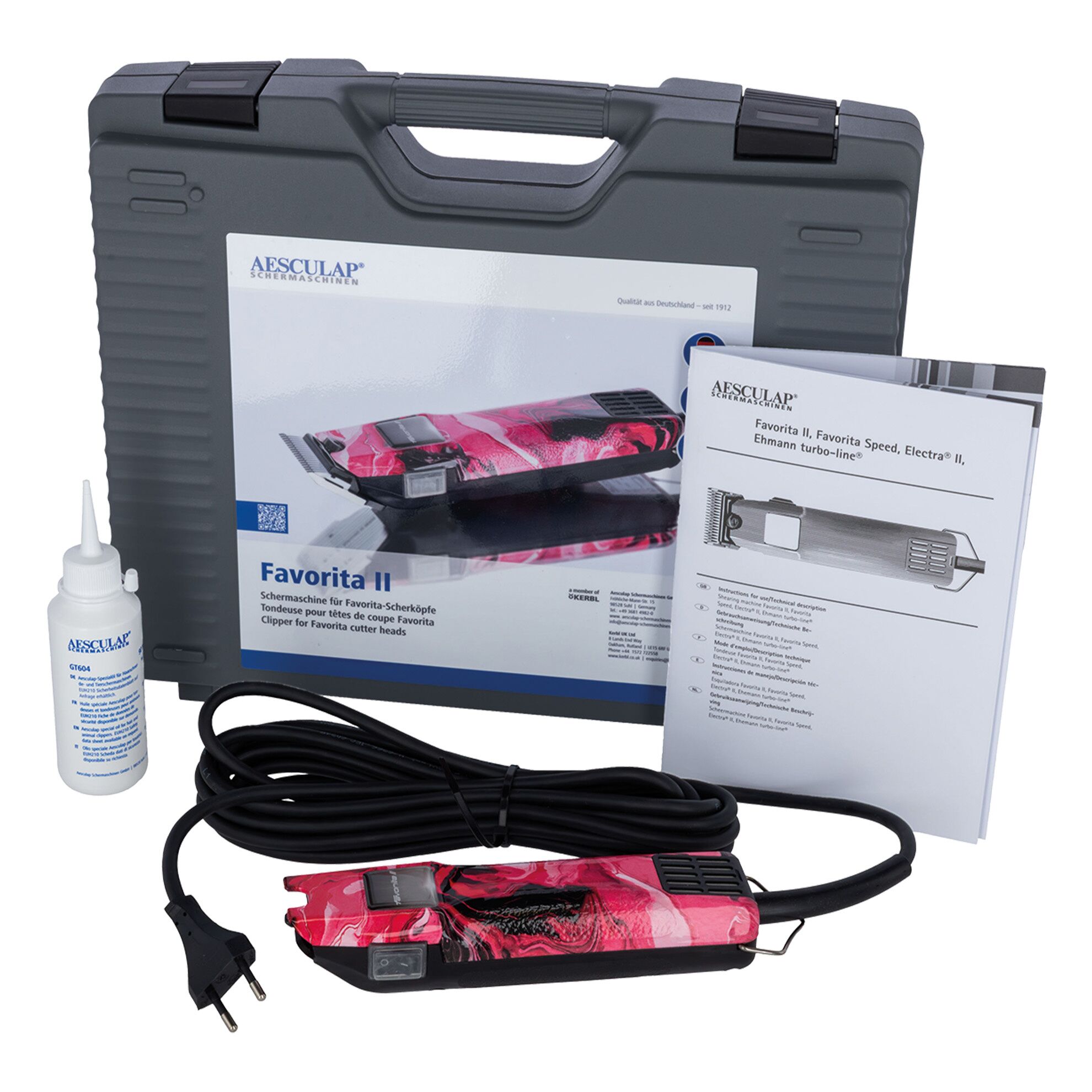 AESCULAP | 1-A1001Tondeuse professionnelle filaire “Made in Germany”, robuste et fiable, pensée pour le travail intensif en salon. Coupe précise et constante grâce au système de tête Favorita (Slide), avec câble 5 m, poignée ergonomique et faible échauffement.